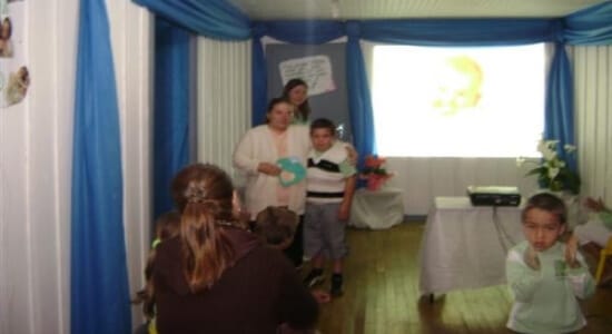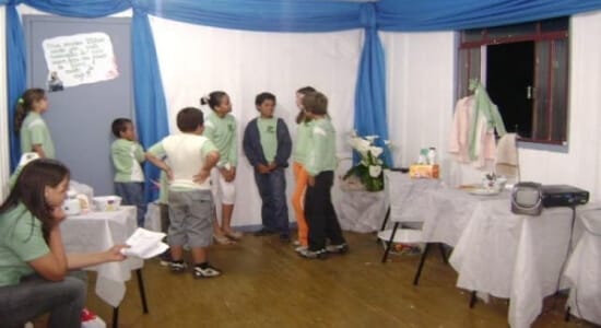 Com uma peça de teatro, as crianças representam a importância de nossas mães no contexto familiar.